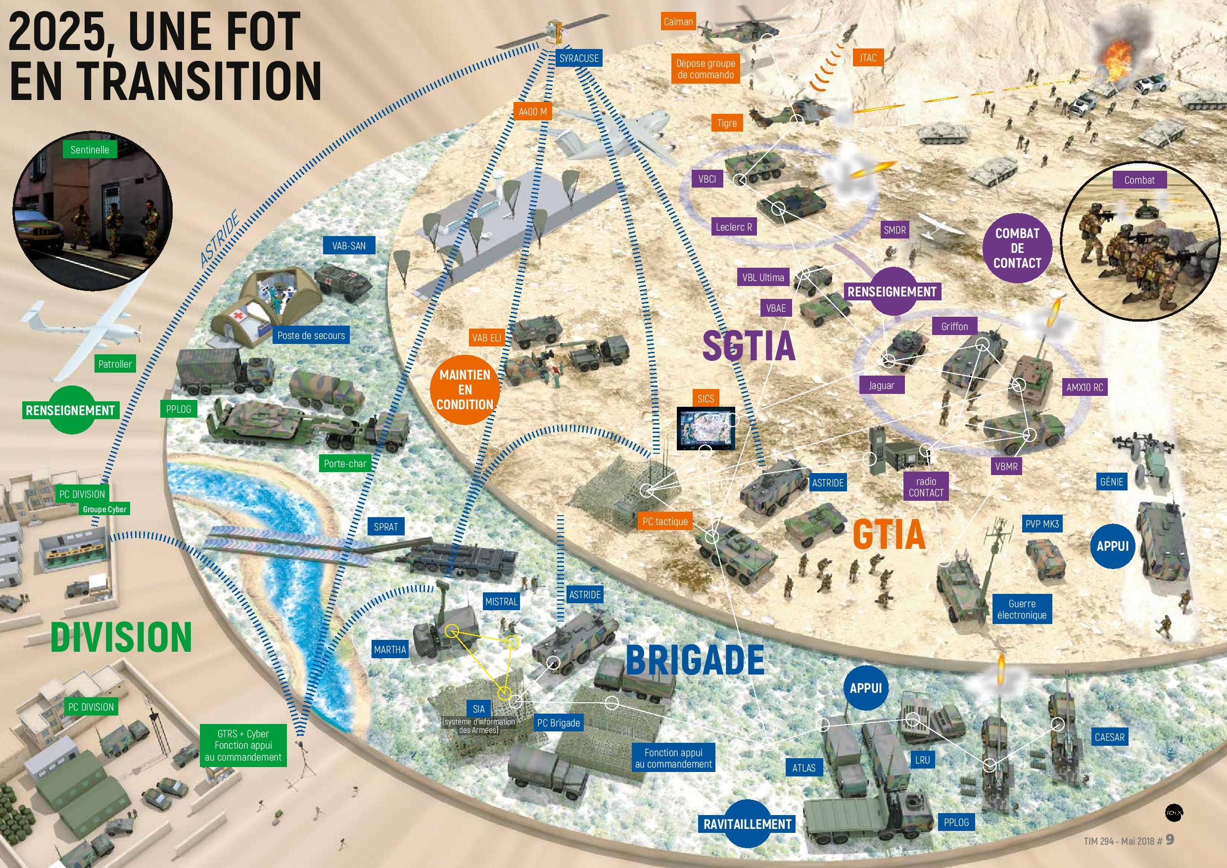 However, SCORPION is not just a few innovative vehicles. It is first and foremost a global force concept addressing the whole Army, from infantry to helicopters. The main aim is to propel France into the era of what the Army calls “collaborative combat”. This means all units will belong to a single network, and information will be collected in real-time from every sensor of the force, fused, and then each user will be displayed the part that is relevant for them.