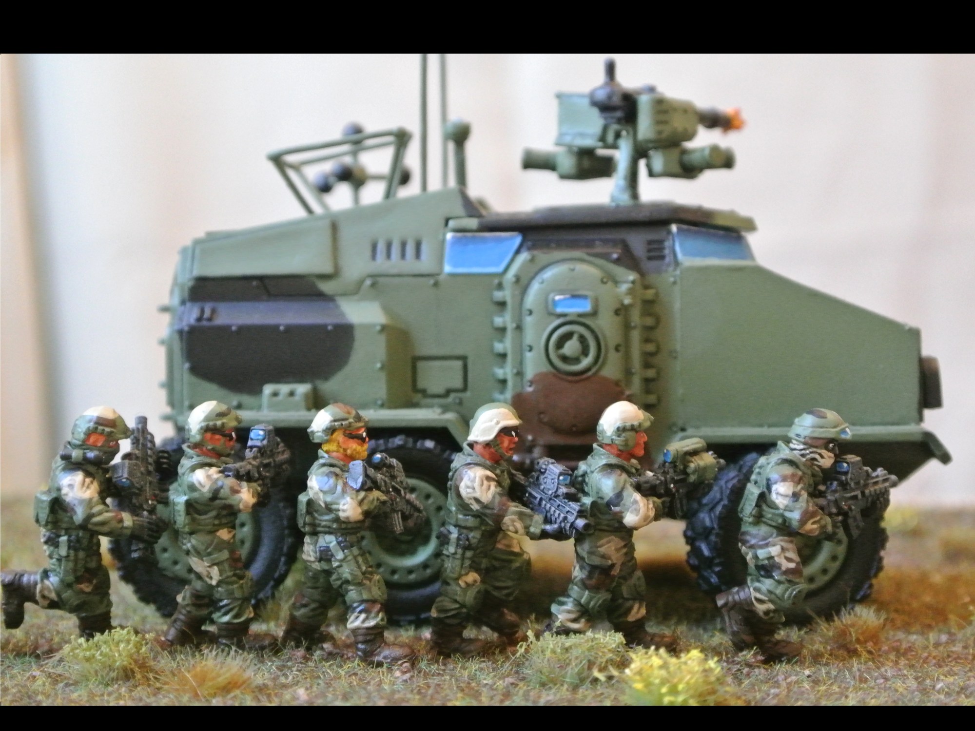 The soldiers are from Anvil Industry’s regiment system ( PMC helmeted head, load vest torso, fatigue legs and arms, assault carbine)