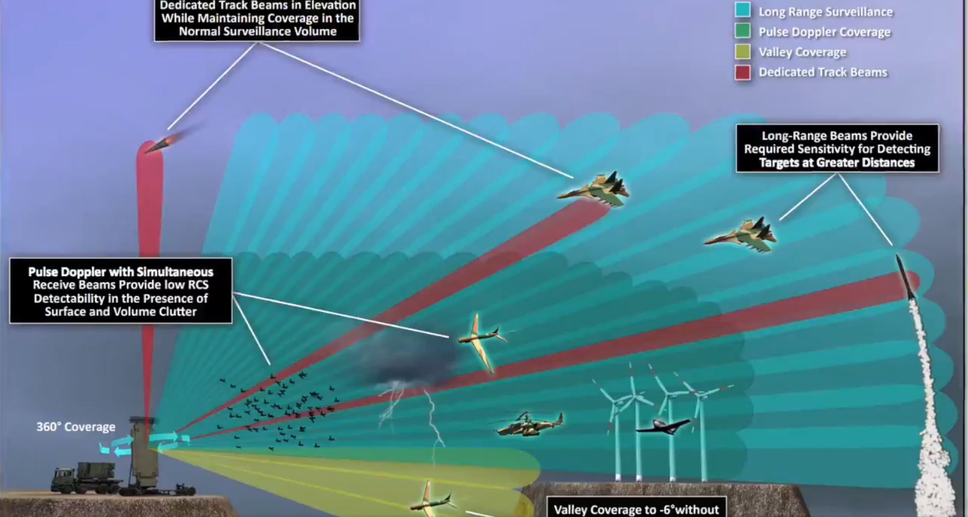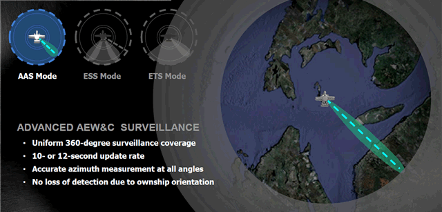 Rotating antennas, like on the E-3 and E-2, do not have that problem. They can be combined with electronic scanning to focus on a particular sector, even stopping the rotation. The AN-APY-9 on the E-2D has the following modes:
