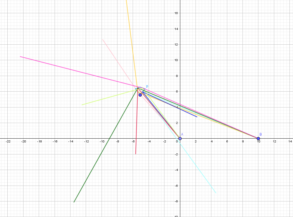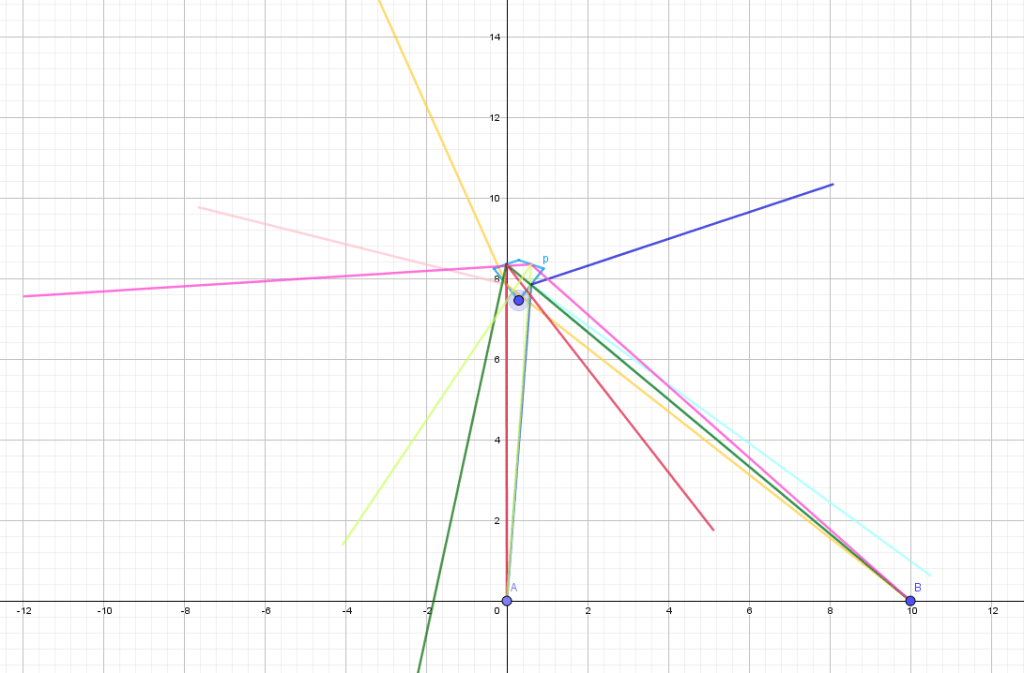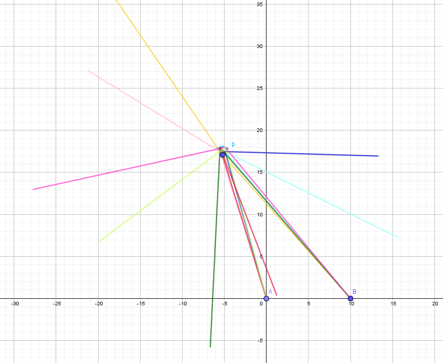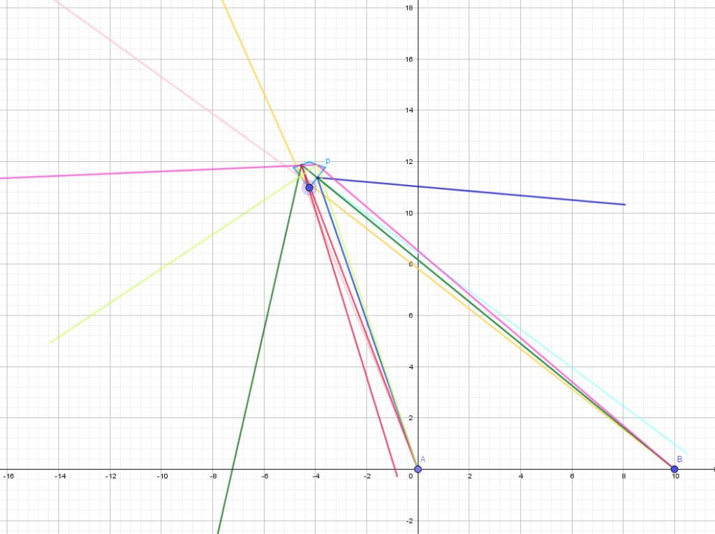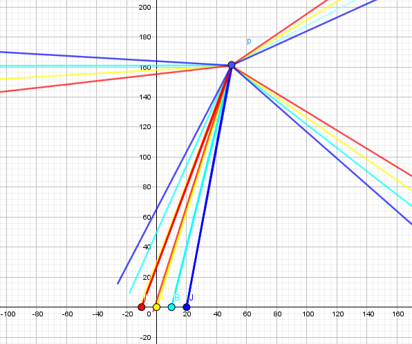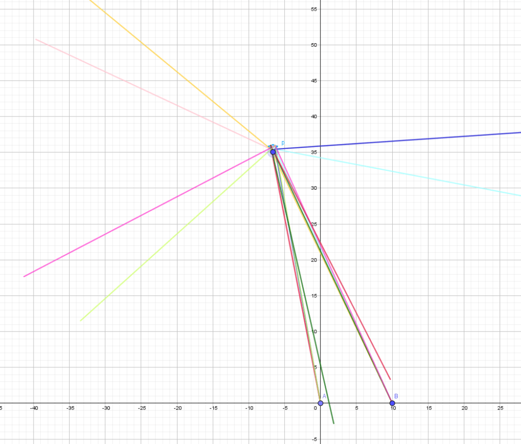 Here the radar is at the origin of the axis, and the stealth target above in blue. The 4 lines going from the stealth target are the reflections. Here is a closer look at the reflections: