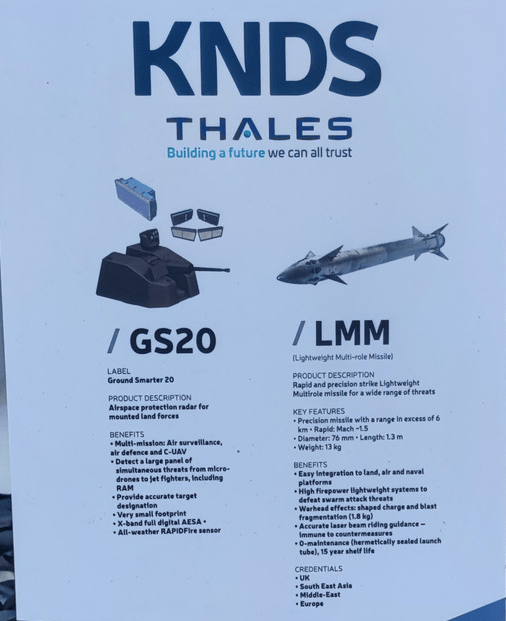 Du coté des radaristes plus traditionnels, Thales a révélé au salon du Bourget 2023 une solution appelée le Ground Smarter 20, intégrée à la tourelle Rapidfire: